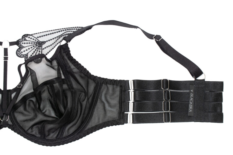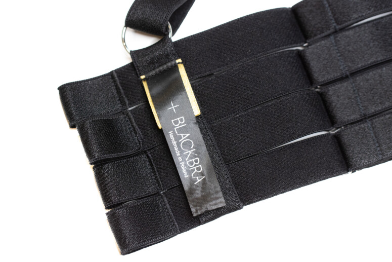 Zaczęło się od openbras, harnessów i oplotów (są nawet rękawiczki!) oraz ciekawych majtek, wszystko w stylu gotycko-bondage’owego buduaru w wydaniu dla każdej i każdego z nas. W końcu jednak Sylwia nie wytrzymała i opracowała własny biustonosz z tyłem z pasków. Powstało niniejszym polskie Bordelle, czy też Agent Provocateur, ale z jedną istotną różnicą: projekty BLACKBRA od początku tworzone były z myślą o osobach plus size. Te mniejsze, zaopatrywane od zawsze przez inne sławne erotyczne i luksusowe marki, tym razem niestety obejdą się smakiem (choć jak znam Sylwię, jest w stanie stworzyć kolekcję dla wszystkich, ale wszak nie od razu imperium zbudowano).