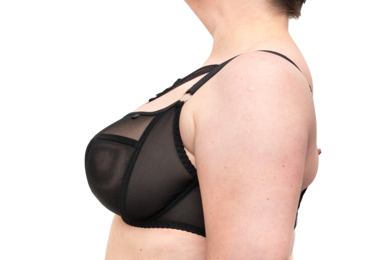 Biustonosze Blackbra mają regulowane obwody, i to w sporym zakresie. Stanik z oznaczeniem 85H przyszedł do mnie jednak w takim ustawieniu, że nie musiałam niczego wydłużać ani skracać. Miseczki pasują jak w większości polskich marek, gdzie noszę właśnie 85H. Przymierzałam także 85I i miseczki były przyjemnie swobodne na szerokość (jak wiecie, jestem fanką szerokich fiszbin), ale trochę za głębokie, w związku z czym słabiej podnosiły biust – pozostałam więc przy H. Wniosek: Blackbra nie ma tak dużych miseczek jak Ava czy Gorsenia, bliżej jej do np. Nessy.