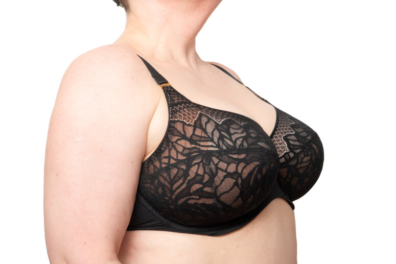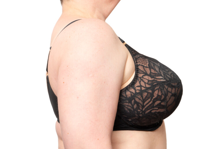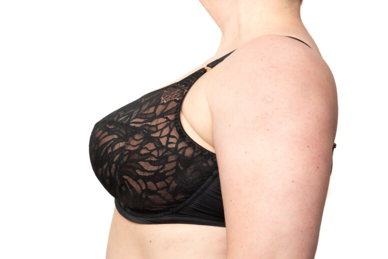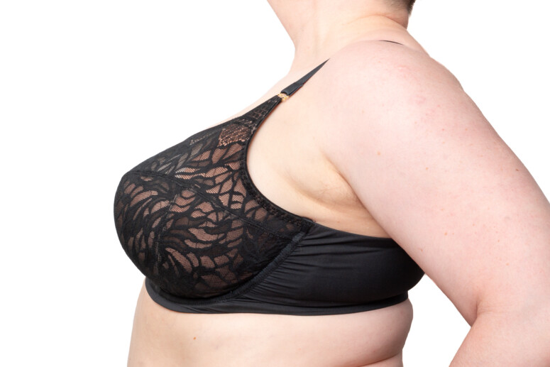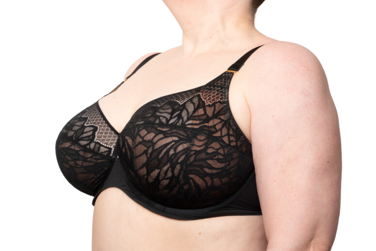Sophie jest też świetnie wykrojona pod pachami – to coś, czego zawsze oczekuję od marek plus size. Muszę mieć możliwość wygodnego ruszania rękami, siedzenia, pochylania się. Nie wstydzę się moich pach i tego, że znajduje się w nich krawędź mojego mięśnia piersiowego (o co chodzi z anatomią pachy w staniku – polecam ten wpis! W skrócie: jeśli boisz się „tłuszczu” – obiecuję ci, tam pod spodem jest mięsień, a jak potrenujesz pompki, to poczujesz go bardziej. On naprawdę tam jest!). Dlatego nie chcę, żeby biustonosz mi to miejsce nadmiernie zakrywał.