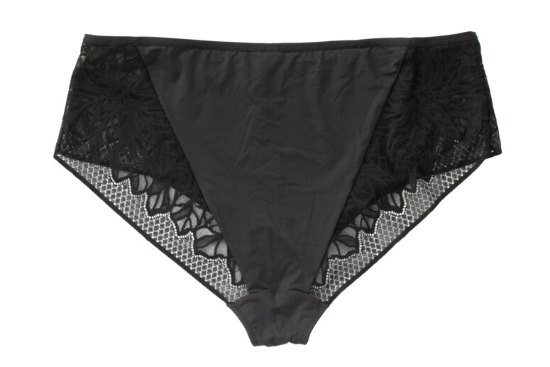 Majtki są porównywalnej fajności ze stanikiem (koronka!). Wygodne, niegryzące, niezjeżdżające z brzucha! (plus sajzy lubią to). I eleganckie, dobre na co dzień, ale nie całkiem zwyczajne – z koronkowym twistem. Elastyczna koronka z tyłu daje bezszwowe wykończenie na pośladkach. A propos pośladków – majty co prawda mają wyższy stan, ale z tyłu odsłaniają krągłości, jednak nie czynią tego w niewygodny sposób. Nic nie podrażni twojego krocza 😉
