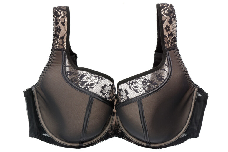 Do Alicante podchodziłam na początku z rezerwą, bo koncepcja beżowej pianki gorseciarskiej pod koronką właściwie nigdy nie przestała mnie uwierać estetycznie – tam przecież powinno być gołe ciało, a nie coś, co je udaje! I tak by było, gdyby nie usztywnienie… Semisofty jednak mają swoje zagorzałe zwolenniczki oraz pewne obiektywne zalety (o tym, za co można lubić, a za co nie lubić staników półusztywnianych, przeczytasz tutaj), co sprawia, że nie rezygnuję z testowania ich. Zrozumiałam też, że beżowy spód pod czarnym ażurem jednak lżej się prezentuje, niż jednolicie czarna powierzchnia – co jednak dobrze widać dopiero na biuście.