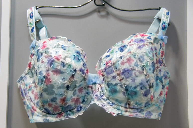 Kończymy z nadrukami – idziemy w stronę kwiatowego haftu. Oto kolejna nowa konstrukcja Dalii – miękki full-cup, którego zakresu rozmiarów jeszcze nie znam. Piękny, bogaty, wielkokolorowy haft, z udziałem cudnej żółci. Coś jak czasy świetności nieodżałowanej marki Fauve… Biorę!