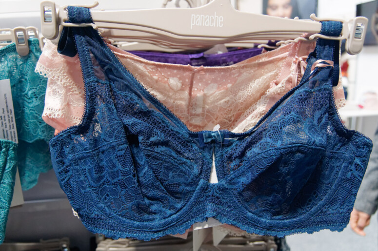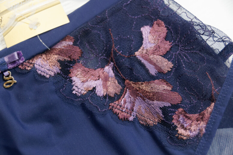 W stronę morskich odcieni pójdzie jesienią Arla marki Panache. Jak ten model typu high-apex sprawdza się na biuście, możecie zobaczyć w recenzji wersji czarnej. Trochę mnie rozczarowało, że ten jest praktycznie jednokolorowy, choć jest tam jakaś subtelna trójwymiarowość w tej koronce – czyżby jednak dwa odcienie? Na wieszaku obok widać fragment szmaragdowej Andorry, a zza różowej wersji Clary wygląda mocno fioletowa Envy 🙂