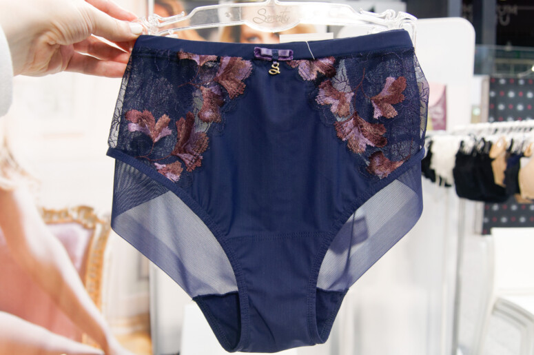 I jeszcze jeden druczek z Dalii – ja tu widzę chryzantemy z chińskich jedwabi. Nawiasem mówiąc, Dalia miewa w kolekcjach całkiem udane majtki z wysokim stanem (jako fanka #majtkizgolfem jestem coraz bardziej zaintrygowana). To był chyba najbardziej efektowny wzór z całego stoiska (kolekcja jesienna, o ile dobrze pamiętam).