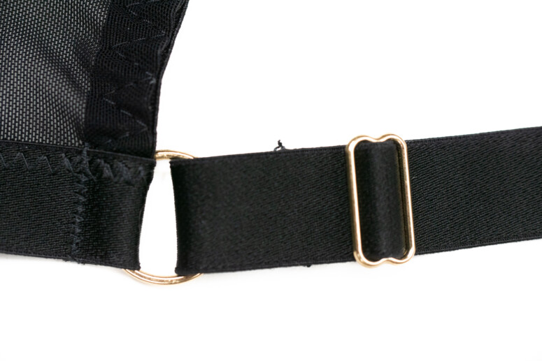 Na mostku szczęśliwie żadnych kokardek nie ma, bo wystaje spod niego paseczek, mocowany pod spodem do dolnej krawędzi stanika i regulowany subtelnym regulatorkiem.