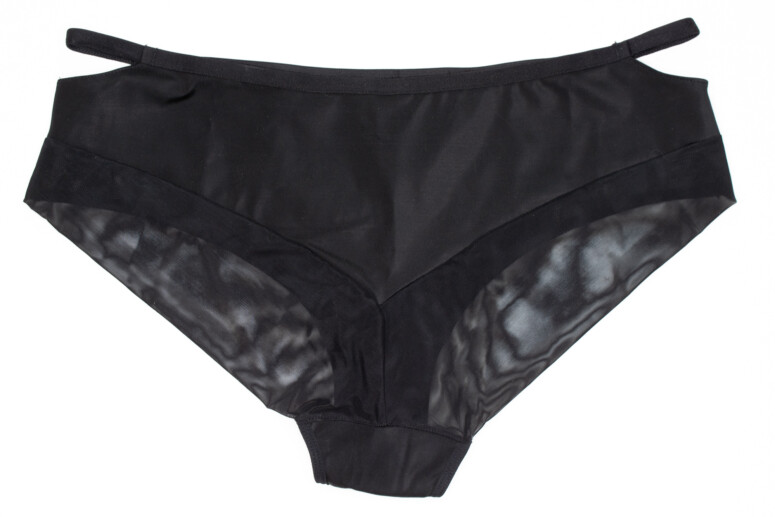 Nareszcie ktoś się odważył i uprzejrzyścił majtki z przodu! Nie całkowicie co prawda, ale w dużej części. I jeszcze je uskrzydlił. Skrzydlate łono, tego jeszcze nie było! Dla mnie bomba, choć wymaga oczywiście zaprzyjaźnienia się z fałdą, jeśli ktosia ją posiada. Tył jest nieco nudniejszy niestety od przodu, za to superefektowne są boki z oćwieczonymi wycięciami. Te majtki to gwiazda, mogłyby być tylko trochę wyższe! I mieć rozmiarówkę sięgającą dalej niż do 3XL… Są wygodne – elastyczne jest w nich wszystko, z wyjątkiem tiulowej wstawki pośrodku, zawierającej złote skrzydła.