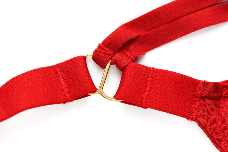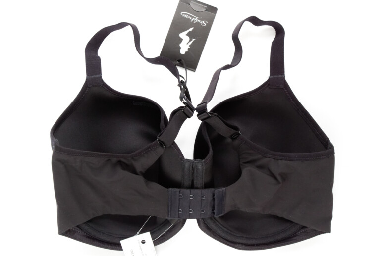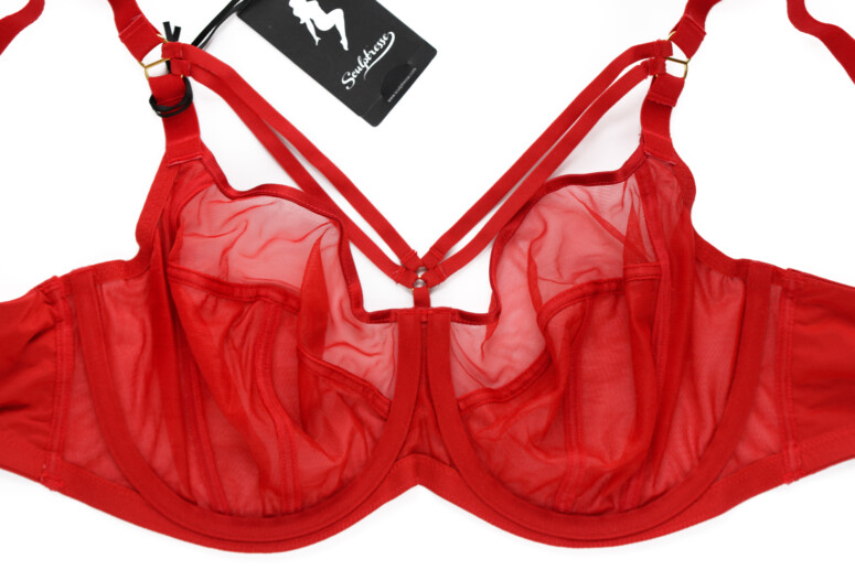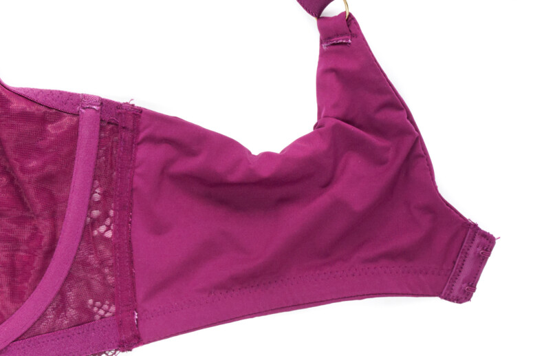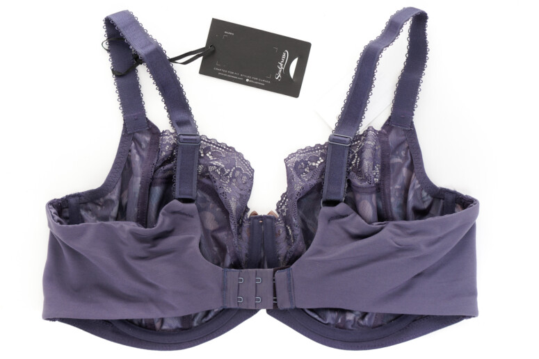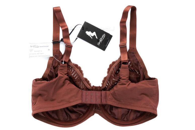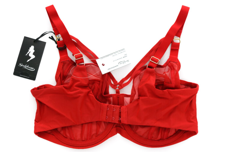 Co jeszcze jest ważne dla komfortu większej osoby (i co sama bardzo doceniam)? Dół biustonosza, zwłaszcza w okolicy mostka, powinien być wykończony od spodu jak najbardziej miękką taśmą. Dlaczego? Bo mamy brzuchy! Siadając, niejedna z nas czuje napór dołu biustonosza na brzuch. Im delikatniej wykończone jest to miejsce, tym wygodniej. Z mojego doświadczenia – taka guma krzyżująca się u dołu mostka potrafi wbijać się w ciało. W Sculptresse jednak nic takiego się nie dzieje – w noszeniu gumka łagodnie wywija się na zewnątrz i tworzy łagodną, nie ostrą krawędź.