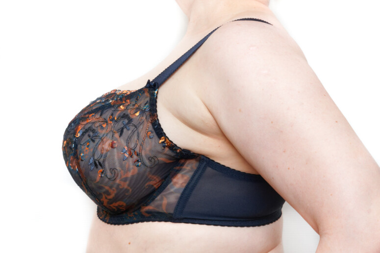 Biust podniesiony, zebrany i zaokrąglony – ta forma zaspokoi potrzeby każdej miłośniczki „kulkujących” krojów biustonoszy. Sam brzeg miseczki odrobinę odstaje, ale pod ubraniem się przypłaszcza i przylega do skóry, nie odznaczając się.