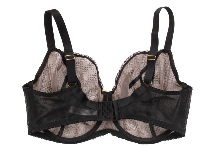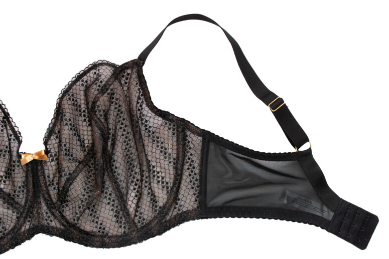 Uwaga: ten stanik nie jest brązowy! 😉 Jest czarny, a lekkie wrażenie brązu zawdzięczamy beżowemu podkładowi pod czernią z przodu oraz złotobrązowym nitkom.