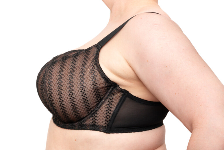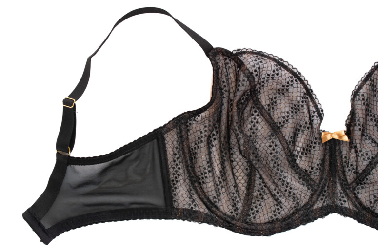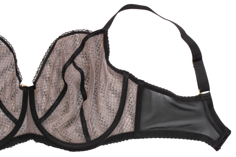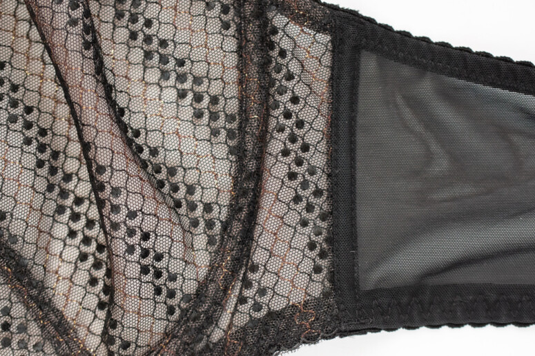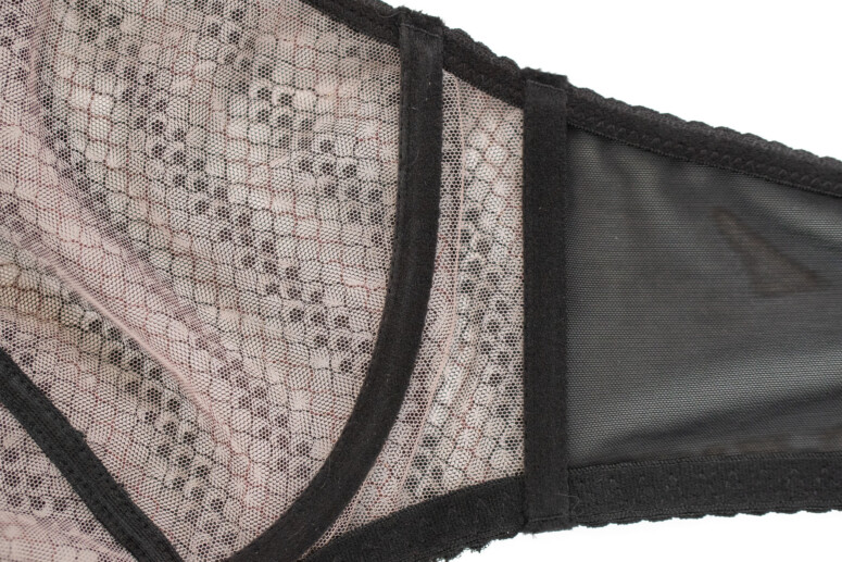 Miseczki są na całej powierzchni podszyte beżową, bardzo cienką siatką, która na jasnej skórze jest zupełnie niewidoczna. Dzieki temu sprawiają wrażenie całkowitej przejrzystości – łatwo ulec złudzeniu, że są zrobione z pojedynczej warstwy czarnego tiulu z haftem.