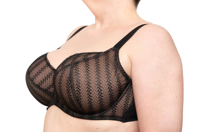 Trudno o bardziej klasyczny krój niż trzyczęściowa balkonetka (tym terminem posługuję się w znaczeniu brytyjskim – jeśli jesteś ciekawa, o co chodzi i co to jest ta balkonetka, zapraszam do tego wpisu 🙂 ). Szwy w tym kroju są proste i sądząc po formie piersi, skuteczne 🙂