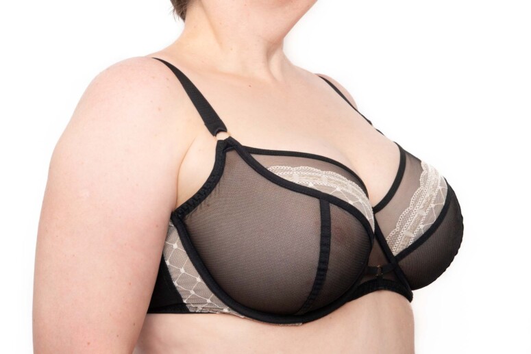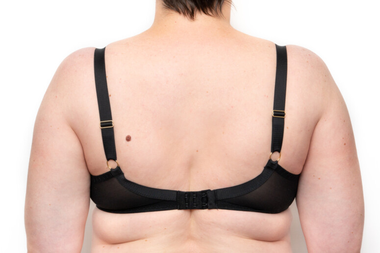 Dół mostka – górny brzeg tej gumki na samym dole zawija się, gdy stanik jest naciągnięty (na fotce nie jest) i może „piłować”.