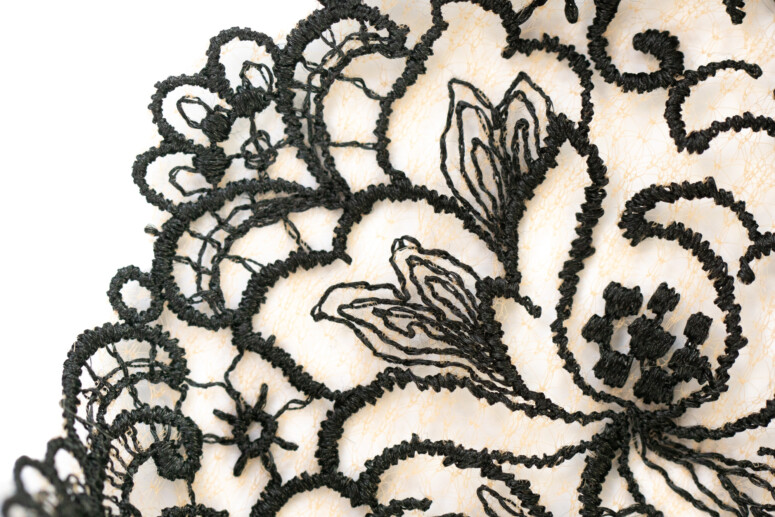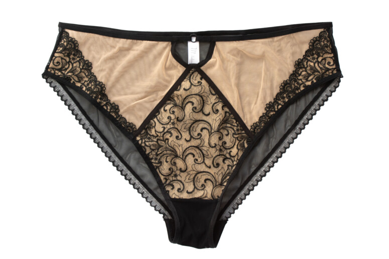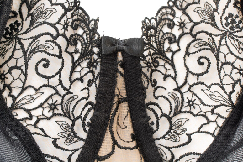 Typowe dla marki Mediolano jest zastosowanie wyrazistego, czarnego haftu na beżowym tle. Ten tiul jest dosłownie niewidką – jak się zaraz przekonacie, prawie nie widać tej beżowej pajęczynki na ciele.