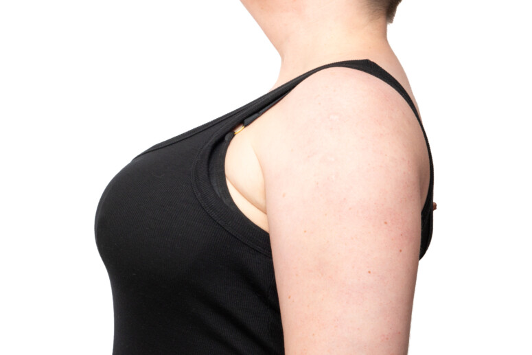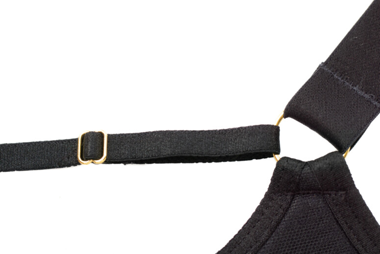 Ciekawym elementem konstrukcyjnym jest połączenie między miseczkami za pośrednictwem paseczków. Nie ma ono decydującego udziału w kształtowaniu ani podtrzymaniu biustu, ale pozwala trochę wyregulować sposób, w jaki układa się górna część. Nie można za mocno skracać paseczków, bo wtedy środkowa część krawędzi może bardziej odstawać – każdy biust musi tu znaleźć swój złoty środek 🙂