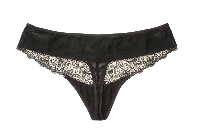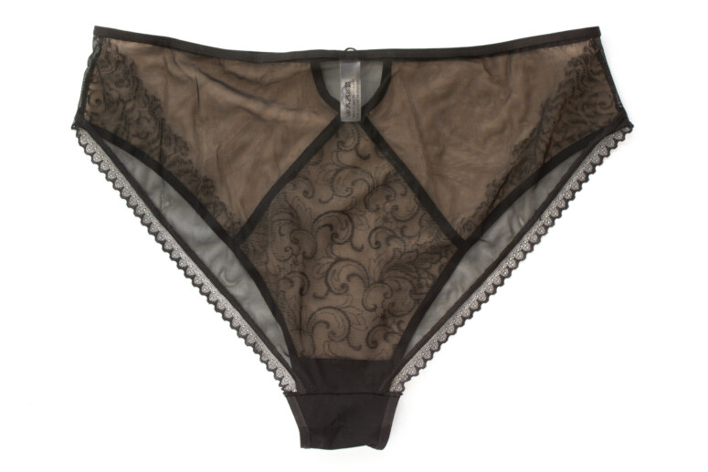 W pierwszym odruchu zakładałam, że wybiorę do recenzji figi, bo bardziej kryjące i z wyższym stanem – większa pewność, że będą dobrze leżały. Ale Mediolano udowodniło już, że skąpe majtki w ich wykonaniu bywają ciekawe estetycznie (kto pamięta zjawiskowe brazyliany z recenzji Royale?), więc postanowiłam ich nie skreślać. I chyba słusznie. Moim zdaniem stringi Libre lepiej pasują do stanika Libre, co nie jest zaskakujące 😉 W majtkach Allure (które w teorii przynależą do biustonosza o tej nazwie, ale mają pasujące do Libre hafty) przód moim zdaniem zawiera zbyt mało czerni, by dobrze harmonizował z czarnymi miseczkami Libre. Co nie zmienia faktu, że są to ładne, strojne majtki, a ich przejrzystość (z obu stron!) ma wiele uroku, trzymają się też na brzuchu i ogólnie dają radę na większej sylwetce.