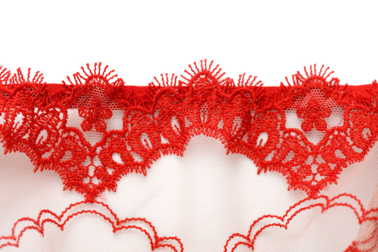 Beż na majtkach mnie zaskoczył, do tak udanego stanika i przodu majtek TAKI tył? no żeby choć coś czerwonego (swoją drogą super odcień?) albo sam tiul. Nie wiem co spowodowało taki wygląd tyłu – może materiału nie wystarczyło? albo projektantce czerwonej kredki.