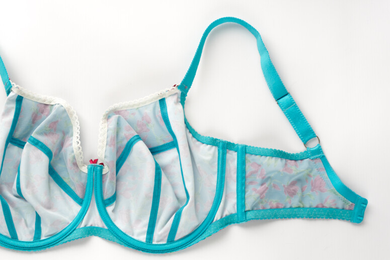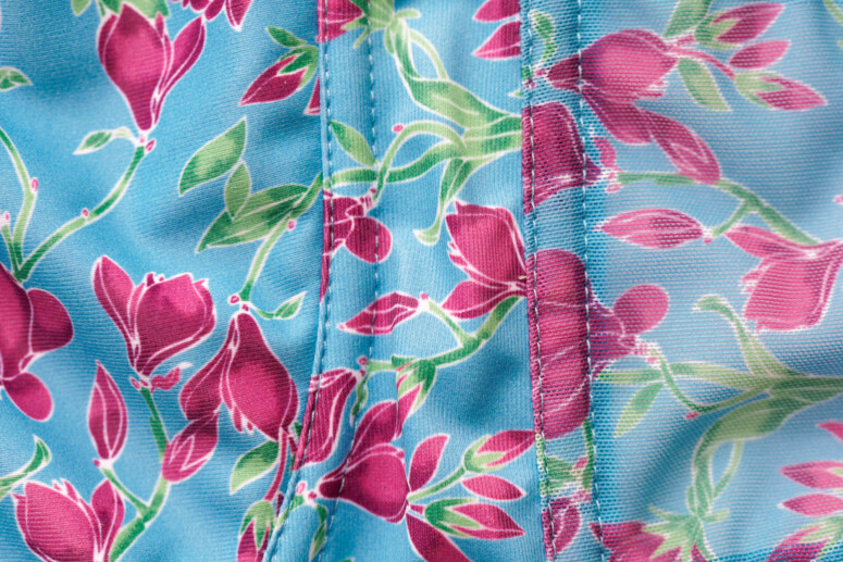 Podoba mi się ogromnie fakt, że nadruk zdobi także boki (regularnie wychwalam za to produkty Avy). Estetki mogą marudzić na białe wnętrze miseczek. Też kiedyś marudziłam, ale przywykłam – dzięki temu z wierzchu mamy intensywniejsze kolory. Góra jest z elastycznej moc-siatki (powernet), ale podszyta stabilnym tiulem (markizetą, jak mówią bieliźniarki i bieliźniarze).
