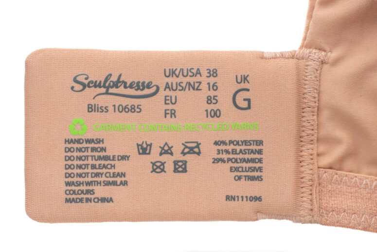 Przy okazji, zwróćcie uwagę na rozmiary podane na metce. Rozmiar pod biustem został podany w kilku systemach, w tym brytyjskim (UK) i europejskim (EU). Rozmiar miseczki natomiast nie został przeliczony z rozmiaru UK. Nie oznacza to, że magicznie mamy przed sobą europejskie i brytyjskie G w jednej osobie ? To się nie da. Brytyjska miseczka G jest mniej więcej (bardzo mniej więcej) ekwiwalentem europejskiego I, z mojego doświadczenia częściej H – ale najważniejsze, by nie uznać, że rozmiarówki te są takie same. Dobrze, że nad tym G pojawiło się oznaczenie: UK. Jeśli chcesz wiedzieć więcej o rozmiarach brytyjskich i europejskich, zajrzyj tutaj.