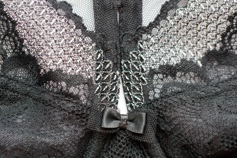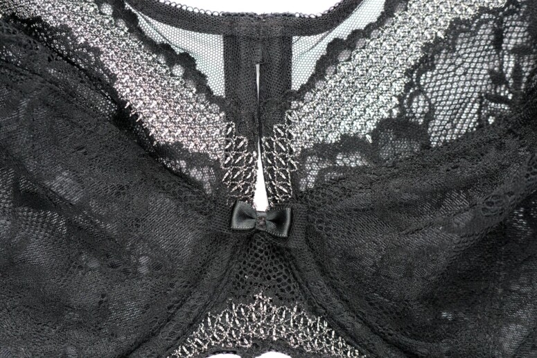 „Okienko” na mostku jest jedym z moich ulubionych stanikowych detali. Tutaj dodaje lekkości, co jest tu bardzo na miejscu, ponieważ Arla jest, przynajmniej w moim rozmiarze, raczej wysoko zabudowanym i wysokomostkowym full-cupem. Co z założenia nie jest czymś, co by mi przeszkadzało – nie mam nic przeciwko pełnym miskom, choć doceniam też kroje odsłaniające więcej biustu.