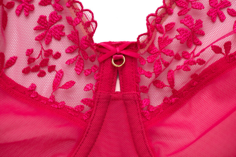 Z przytupem, bo od razu w trzech kolorach, w kolekcji pojawia się nowość – Zarla, model bazowany na konstrukcji Morgan (czyli średniozabudowany side-support), ale cały w tiulach – ze stabilną górą miseczki. Producent chwali się też wygładzającym tyłem z ukrytymi obszywkami, co może uczynić z Zarli komfortowego, opływowego bazowca. Sezonowy kolor Zarli to słodki róż o nazwie love potion, pozostałe – bazowe – to czerń i beż. Podoba mi się względna prostota tego haftu – coś jak kwiaty i małe owocki – i ozdobny mostek z „dziurką”.