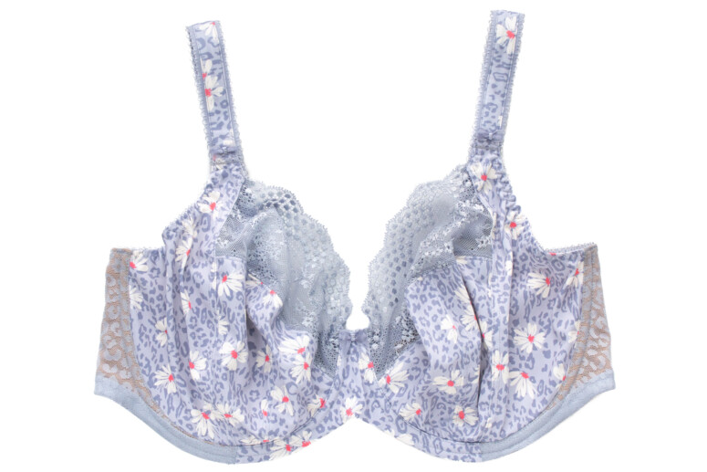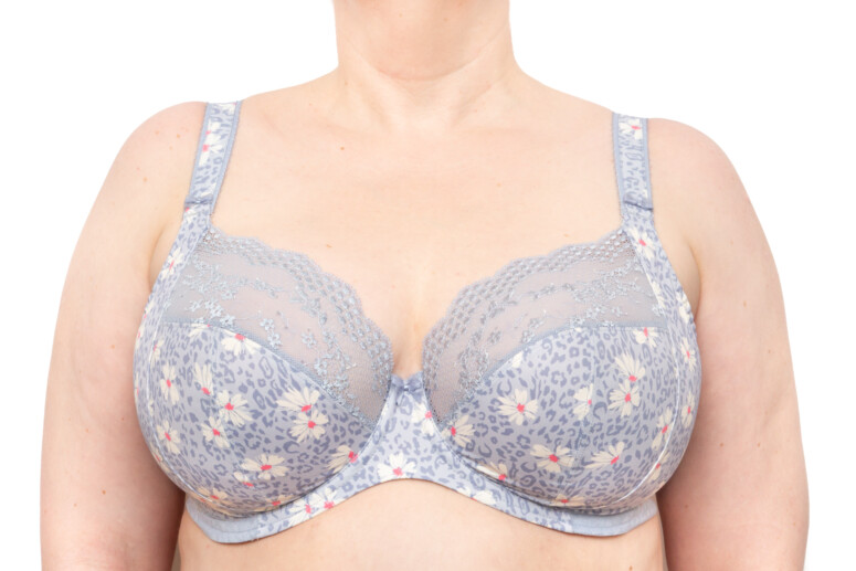 W stanikach Elomi zawsze mam dobrze podniesione, okrągłe piersi i Lucie nie jest tu wyjątkiem. Biust jest ogarnięty z boków, ale nie skupiony mocno do dekoltu, jak w polskich markach typu Novika czy Ewa Michalak. Elomi szanuje rozłożyste ciało z szeroką klatką piersiową, w końcu to marka plus size. Miseczki są gładkie i nie odznaczają się pod ubraniami, koronka u góry idealnie przylega zarówno na mniejszej, jak i większej piersi. Jeśli masz niedużą asymetrię, w Lucie z dużym prawdopodobieństwem nie będzie ona w ogóle widoczna.