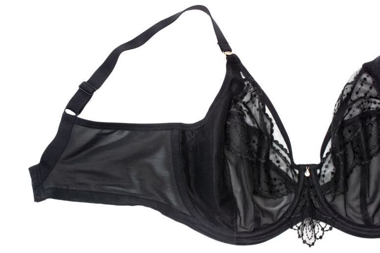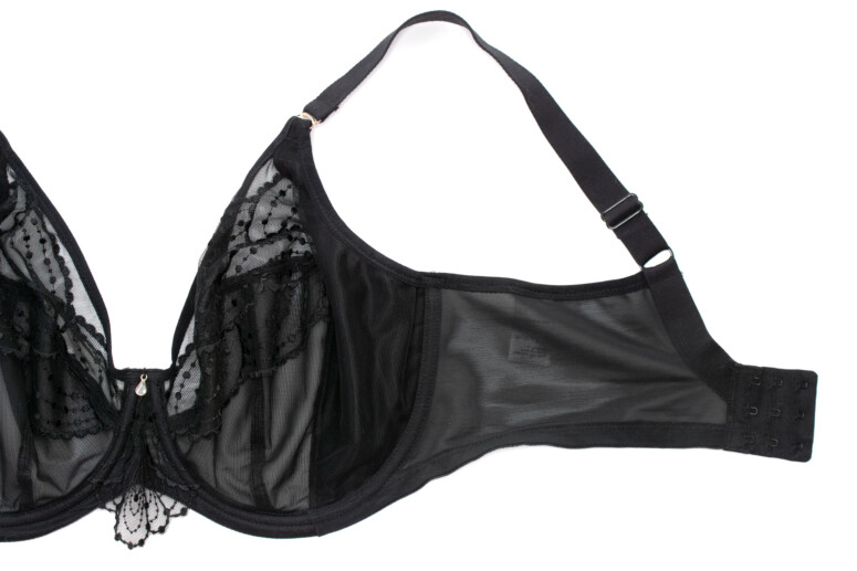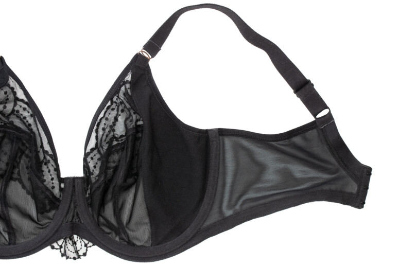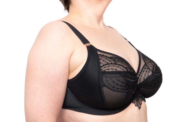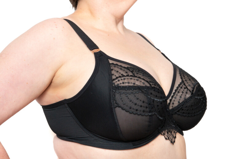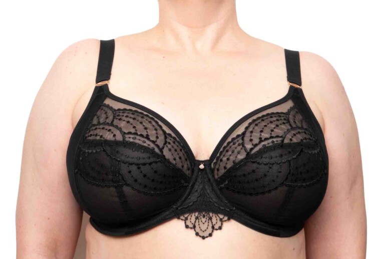 Konstrukcje Elomi wychwalam regularnie, przypomnę tylko, że jest to model oparty na Matildzie (tu znajdziecie recenzję Matildy) – bestsellerze chyba największym po full-cupie Cate, a może nawet i przed nim 🙂 Matilda – plunge – pojawiła się nieco później niż jej pełnomiseczkowa koleżanka (która kiedyś miała na imię Caitlyn) i wzięła plus-sajzowy bieliźniany świat szturmem. I słusznie, oferuje bowiem niższe zabudowanie w modelu wciąż miękkim i bardzo dobrze podtrzymującym. Na tej konstrukcyjnej bazie aktualnie opiera się znaczna część oferty marki. Cechuje ją oczywiście obniżony mostek, a do tego solidne boczne panele (side-support) wzmocnione dodatkową warstwą materiału. Jak wszystkie Elomczaki, jest też wygodnie wykrojona pod pachami i ma szerokie łuki fiszbin dostosowane do większych wymiarów ciała.