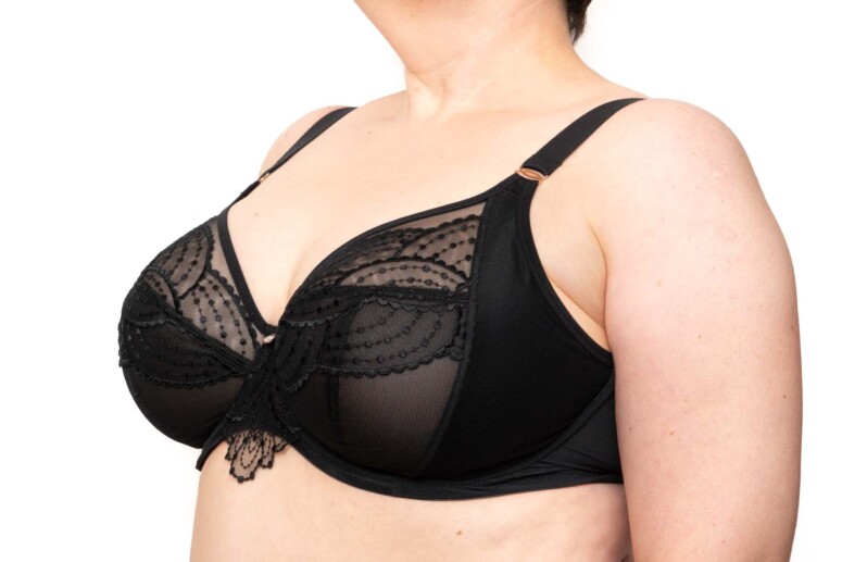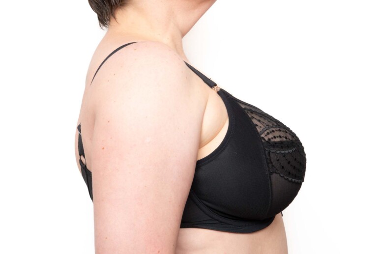 Zero zdziwień – 36G pasuje jak zawsze. Trochę tylko wątpliwości dostarczyła mi krawędź miseczki, zwłaszcza przy większej piersi. Mają one zamknięty kształt, jak zwykle w Elomikowych plandżach, dlatego część biustów może uznać je za mniejsze miseczkowo – jednak zmiana rozmiaru nie musi być tu wcale dobrym pomysłem. Pod biustem, jak to biustonosze Elomi, Priya jest spora, dlatego pozostaję przy rozmiarze UK36 i ani myślę o zmianie na 38.