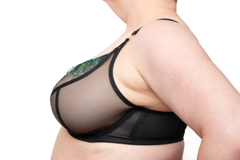 Materiały w Show-offie są dla mnie stuprocentowo przyjazne. Rozumiem, że wrażliwe piersi czasem nie lubią siatek czy haftów, ale uczciwie stwierdzam, że nie czuję ich w ogóle, co mnie zachwyca zwłaszcza w kontekście tych metalicznych nitek. Zapięcie niczym nie kłuje (polskie firmy, uczcie się!), fiszbin bocznych typu patyki – brak.
