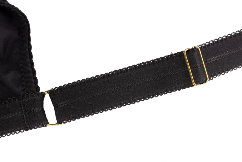 Miłym detalem są metalowe elementy, widoczne jednak tylko z tyłu. Ramiączka są raczej zwyczajne, jakie znamy z wielu modeli – a wolałabym jakieś gładkie z satynowym połyskiem… Haft z przodu jest zdecydowanie główną gwiazdą Riny.