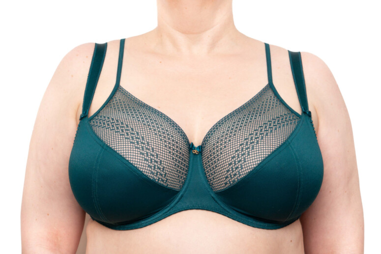 Konstrukcja Amaro to znana nam dobrze z Gorsenii trzyczęściowa miseczka, tyle, że bez lamówki na krawędzi. Siateczkowa góra miseczki jest przez to trochę mniej stabilna, choć wciąż nie jest to bynajmniej tiul elastyczny. Naddaje się akurat na tyle, by dać trochę więcej miejsca na większą pierś. Dzięki temu rozwiązaniu Amaro jest super modelem dla biustów asymetrycznych, a także pełnych u góry, które często borykają się z wrzynającymi się lamówkami, albo na odwrót – tych mniej pełnych, które mają kłopot z fałdowaniem się górnej części miseczek. Jeśli cokolwiek pod spodem będzie nierówne, koronka pomoże to zamaskować.