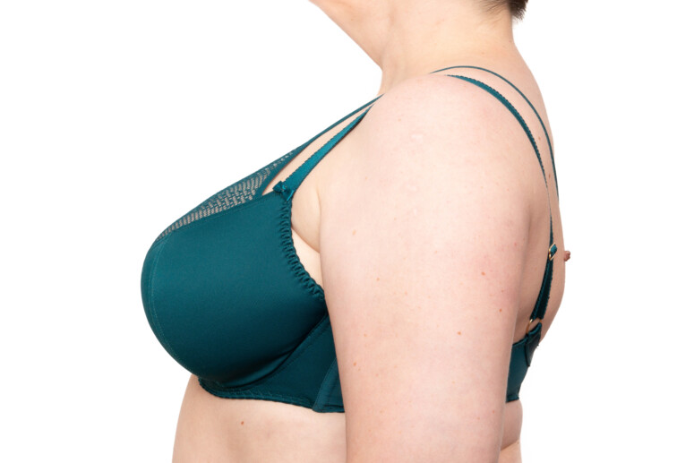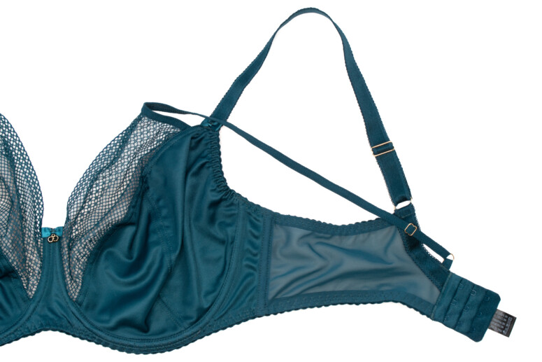 Warto podkreślić, że „nibyramiączka” mają tutaj ważną funkcję. Jest nią mocowanie koronki na miseczkach do ramion – a właściwie, przez ramiona, do tyłu stanika – nie jest nią jednak podtrzymanie biustu! Gdybyś zsunęła je z ramion, piersi ani trochę nie opadną. Na tych wąziutkich paseczkach nie wisi żaden ciężar.