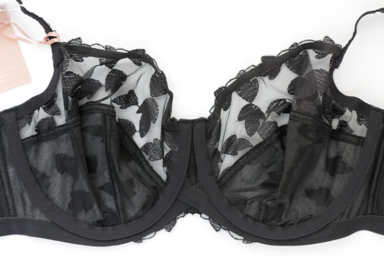 Lois jest klasycznym balkonetkowym „mięczakiem” z haftowanego tiulu, z wzmiacniającymi slingami po bokach miseczek. Przypomina mi trochę modele Samanty czy Ewy Bien (ciekawe, że zwykle skojarzenia szły mi w drugą stronę – modele polskie kojarzyły się czasem z brytyjskimi – perspektywa się przesuwa, i to chyba dobry znak! 🙂 ).