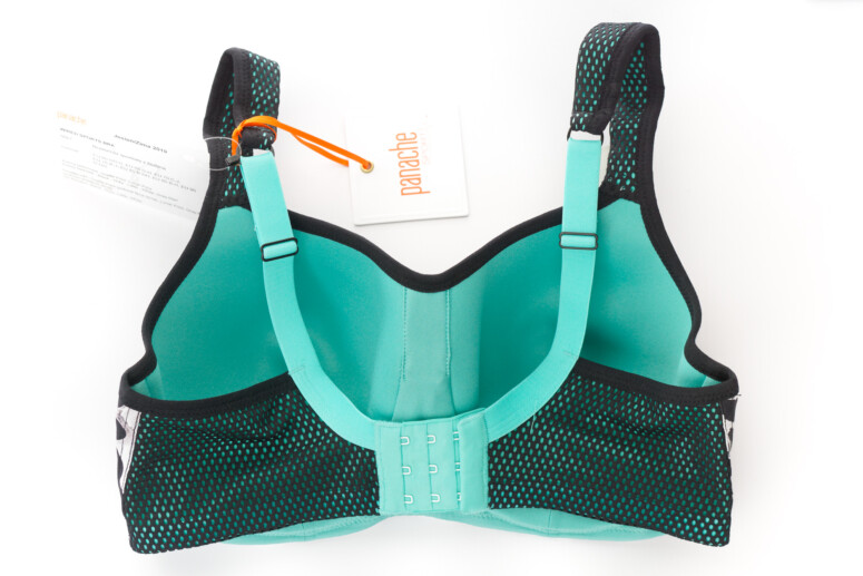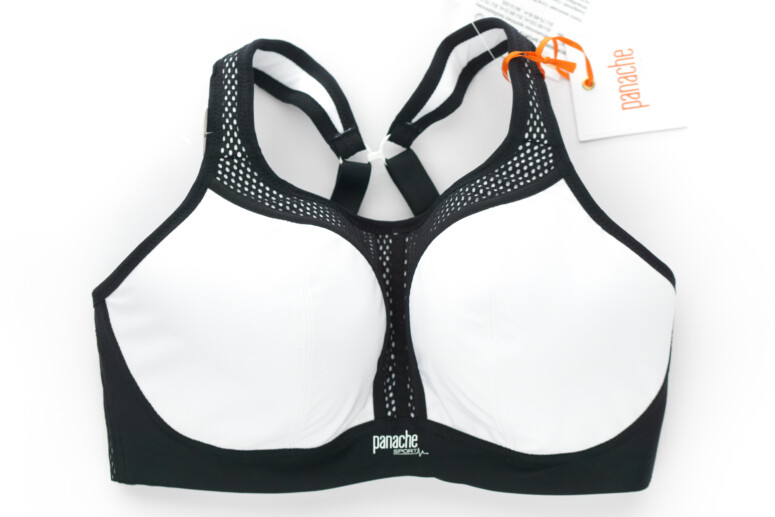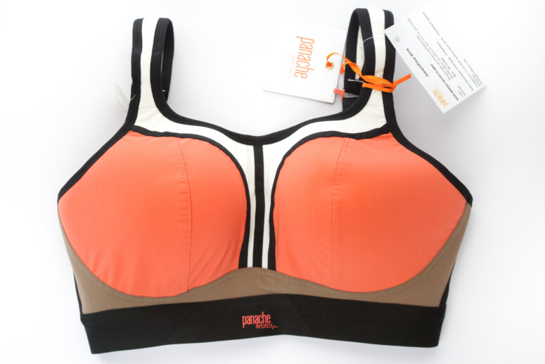 Tym z Was, które jeszcze nie znają Panache Sport na fiszbinach, przybliżę: jest to model sportowy na fiszbinach 😉 i z modelowanymi termicznie, usztywnianymi miseczkami. Pancerność i zabudowanie gwarantują naprawdę niezły poziom unieruchomienia biustu, a przy tym dobry kształt, zwłaszcza jak na modele sportowe, które często mocno spłaszczają piersi. W tym sporciaku wygląda się jak w staniku, nie jak w bandażu 😉 (możecie zobaczyć w mojej recenzji Panache Sport, jak prezentuje się rozmiar 38FF w różnych ubraniach i bez). Fiszbiny są zabezpieczone otoczką ze sprężystego silikonu, żeby zminimalizować nieprzyjemne naciski na skórę. Są stanikomaniaczki, które noszą ten model na co dzień, ponieważ przy bardzo dużych piersiach im mocniejsze podtrzymanie, tym większa wygoda i swoboda ruchów.