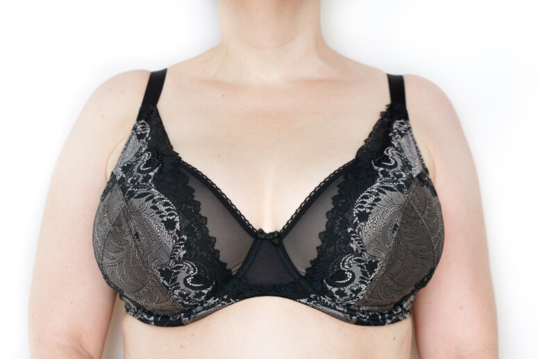 Nie jest mi łatwo to ocenić w przypadku Katii. Ten stanik ma specyficzną konstrukcję, która moim zdaniem jest dostosowana przede wszystkim do większych wymiarów pod biustem i większego rozstawu piersi, niż mój. Rozmiar 38FF, który zwykle wybieram w Sculptresse, miał tę przykrą dla mnie właściwość, że krawędzie miseczek (te z elastycznego tiulu) wcinały mi się w piersi, jednak nie jestem pewna, czemu to przypisać: rozmiarowi, czy właśnie konstrukcji – z szerokim mostkiem i zaplanowanej na wyraźnie szerszy rozstaw piersi (podobny efekt mam często w plunge’ach Elomi). Podejrzewam, że osoba o większym rozmiarze pod biustem mogłaby w ogóle nie doświadczać tego efektu w swoim zwykłym rozmiarze. Nie mam jednak „materiału doświadczalnego” i trudno mi to potwierdzić. Wybrałam 38G, pozbywając się w ten sposób wcinania, ale uzyskując trochę zbędnego luzu u góry miseczek (w high apexie to jednak normalne, więc nie robię z tego problemu).
