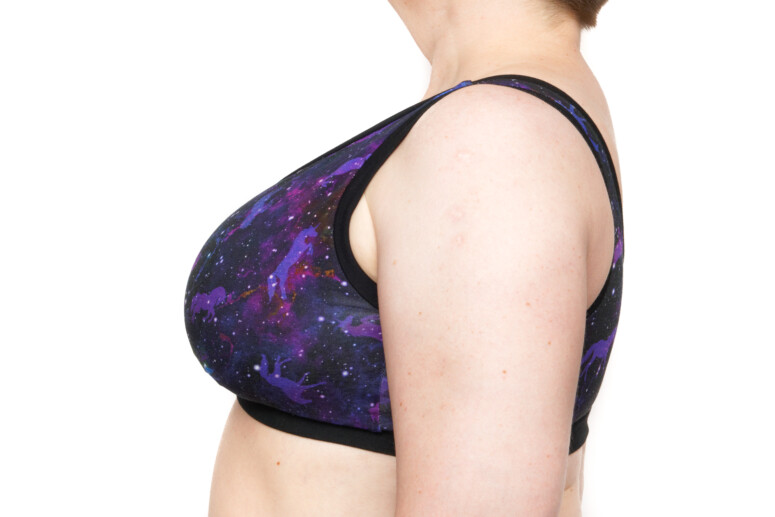 Ja poszłam na całość i po prostu zapytałam mailem, co powinnam wziąć na moje brytyjskie 36 w porywach do 38 FF lub G. Na początek zaproponowano mi rozmiar L Cosmic, który uznałam za za mały w biuście – czułam się zbyt spłaszczona, ramiączka mnie ciągnęły, podczas gdy pod biustem stanik dobrze się trzymał. Zmiana na L Super poprawiła sytuację, choć nie wyeliminowała jednego problemu – w Oryginalny Molke trochę ciężko się zapakować i z niego wypakować, ponieważ jest nieodpinany z tyłu, a w wydaniu Uni-verse (materiał o ratingu 3 – firm, czyli mocny, mało elastyczny) jest bardzo mało rozciągliwy.