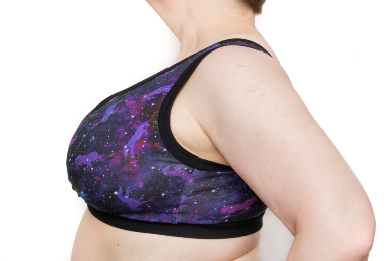 Wydawałoby się, że tak prosty pomysł nie ma prawa działać, prawda? A jednak działa, dzięki doborowi materiałów, które nie ciągną się jak gumka w majtkach (nawiasem mówiąc, majtki Uni-verse też są ścisłe – początkowo dobrane M wymieniałam na L). Mój Uni-verse nie nadawałby się raczej do biegania (spodziewałabym się obcierania na szwach i mimo wszystko niedostatecznego trzymania oraz słabego odprowadzania wilgoci), ale do spokojniejszej aktywności fizycznej powinien wystarczyć. Nie wiem, jak z innymi ratingami (1 – comfort fit, 2 – everyday fit, mój to 3 – firm fit) – dużo na pewno zależy od wielkości biustu.