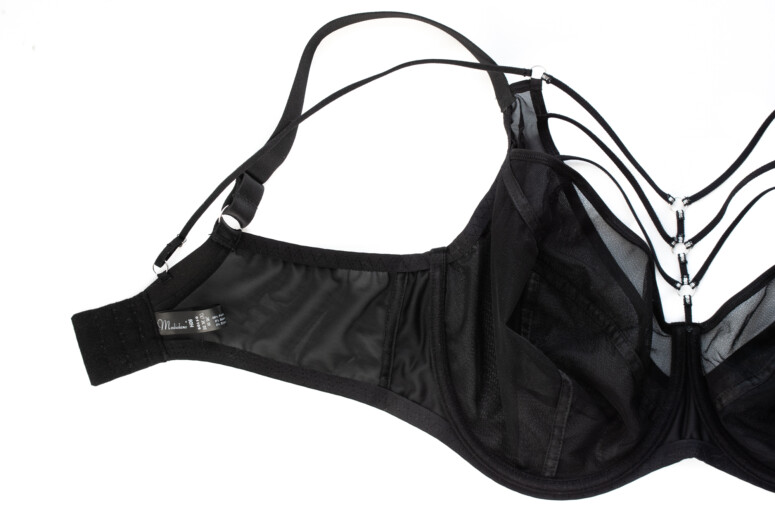 Żeby zobaczyć konstrukcję miseczek w tym biustonoszu, trzeba zajrzeć do środka. Mamy tu klasyczne, trzyczęściowe miseczki o średnim zabudowaniu. Jak już wspomniałam, są bardzo skuteczne w podnoszeniu i modelowaniu, to samo dotyczy podtrzymania. Do sukcesu w tej dziedzinie przyczynia się stabilny tył z dobrej jakości powernetu i solidne, mało rozciągliwe ramiączka.
