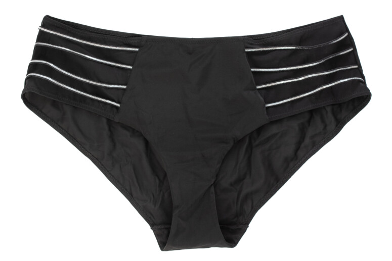 Z nazwy są to figi pełne, ale nie są szczególnie zabudowane. To po prostu klasyczne figi, ze średnim stanem. Atrakcją są tu paseczki po bokach z przodu – nie są naszyte na materiał, ale układają się dobrze i ładnie błyszczą. Są bardzo miłe w dotyku i wygodne. Mam rozmiar 3XL, który oceniam jako dobry, być może mniej iksów też by zadziałało. Wielka szkoda jednak, że zakres rozmiarów nie jest większy, skoro biustonosz jest produkowany do 95 pod biustem! Za to odejmuję punkcik.