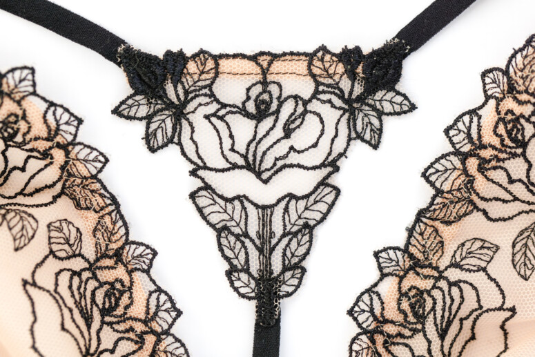 Po paskowym mainfeście czas na parę szczegółów o naszej Tori. Kocham ją za te róże, które przełamują geometryczną monotonię i kojarzą mi się z kwiatowymi projektami Lovechild Boudoir (koniecznie obejrzyjcie ich więcej – roślinność to tylko jednen z wielu motywów, którymi genialna projektantka potrafi oplatać ciała).