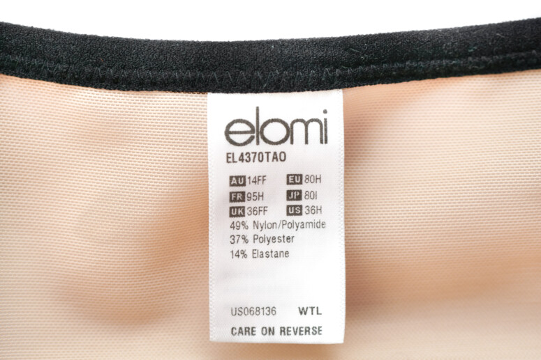 Wybrałam swój „mniejszy” rozmiar Elomiowy, czyli 36FF. W biustonoszach tej marki czasem lepiej pasuje mi 36FF, czasem 36G. Czasem trudniej mi zdecydować się na rozmiar ze względu na to, że konstrukcje w fasonie plunge często wcinają mi się trochę brzegiem miseczki w pierś. Zwiększenie rozmiaru czasem pomaga na zniwelowanie tego efektu, ale w tym przypadku większe miseczki (G) były za luźne i wcale nie leżały lepiej, poprzestałam więc na FF-ce. Co do rozmiaru pod biustem – Elomi jest jak zawsze hojne i 36 (teoretycznie odpowiednik europejskiego 80) w zupełności mi tu wystarcza, a nawet pozwala się nosić zapięte na środkową haftkę bez żadnej niewygody.