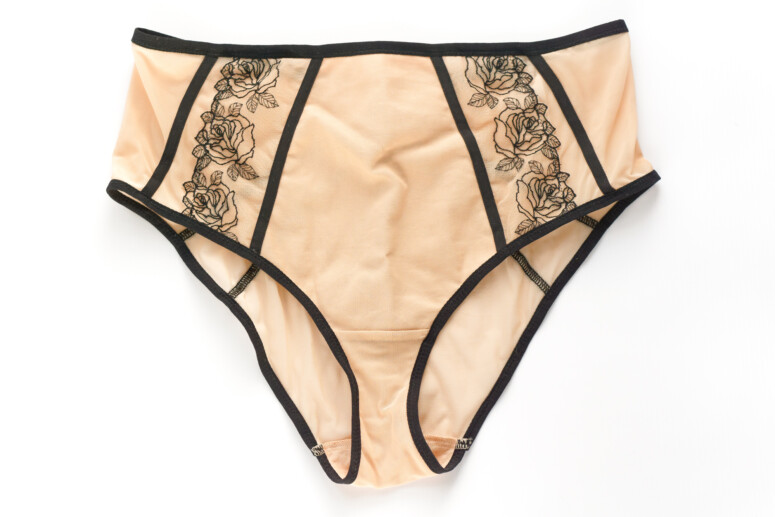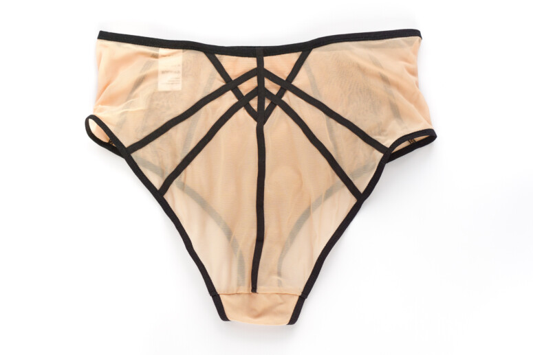 Kocham te majtki! Na zdjęciach, szczególnie tych na płasko, kojarzą mi się z niebotycznie wyciętymi po bokach gatkami z głębokich ejtisów, ale w trakcie noszenia wcale nie mam pachwin na wierzchu. Wysokość jest idealna – siedzą pod pępkiem i trzymają się tam. Mam tylko jeden problem – z tyłu, zwłaszcza u góry, gatki się marszczą, jest ich tam jakby trochę za dużo. Chyba nie mam wystarczająco szerokich bioder i wydatnych pośladków, żeby je odpowiednio naciągnąć. Są bardzo hojne rozmiarowo – L było za duże, wybrałam więc M, co robi wrażenie, zwłaszcza w porównaniu z polskimi majtkami, które pasują mi dopiero w XL lub XXL… (mój aktualny obwód bioder to 105 cm).