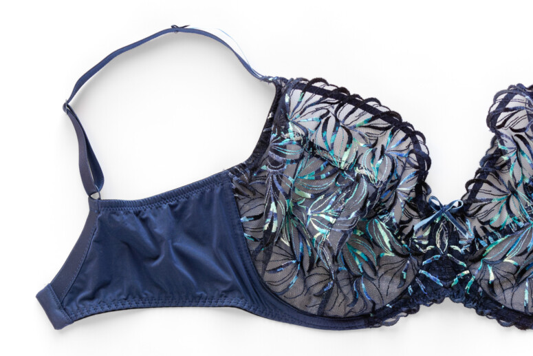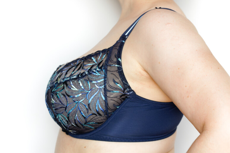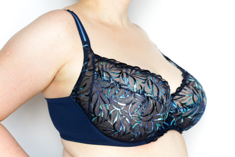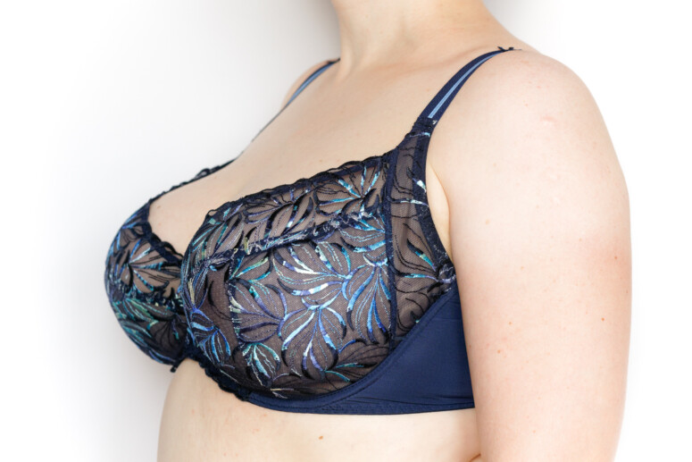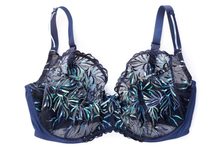 Miękkość jednak niejedno ma imię. Jest kilka polskich marek biustonoszy, które „stoją” na haftowanych tiulach, jednak dla mnie to wciąż za mało. Większość podchodzi do miękkich miseczek w dużych rozmiarach raczej asekurancko, tworząc je ze stabilnych dzianin, a koronki i hafty umieszczając co najwyżej w górnej części miski. Miękkie półprzejrzystości są za to normą w brytyjskiej bieliźnie dla większych biustów. Bardzo bym się ucieszyła, gdyby więcej naszych firm poszło za ich przykładem i szyło więcej haftowanych mgiełek w D+. I szyło je w dobrych konstrukcjach. Da się! Zobaczcie, jak z tym zadaniem poradziła sobie Ewa Bien w modelu Naria.