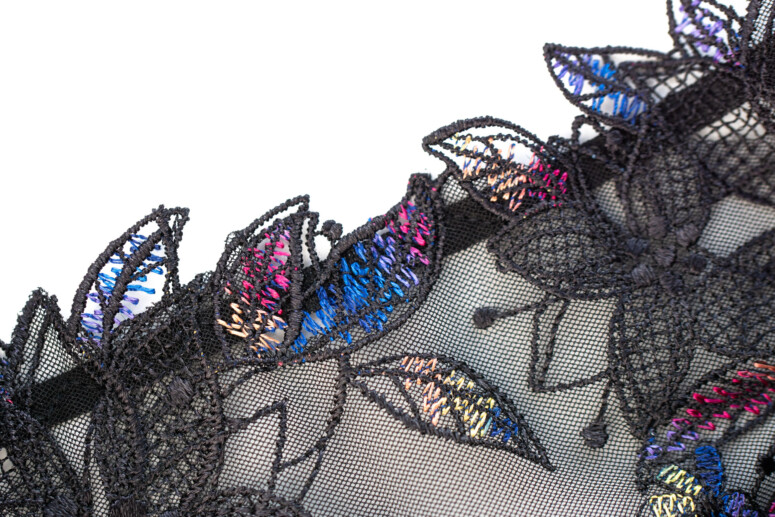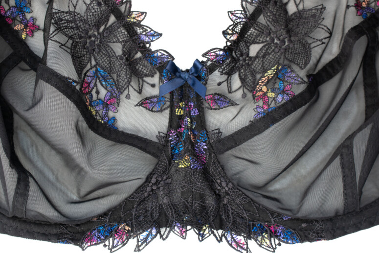 Czarny biustonosz pewnie większość z was ma w swojej szafie. Czerń jednak niejedno ma imię, a moje ulubione imię czerni to czerń z dodatkiem mocnego koloru. Wielobarwnych haftów nie za wiele nam ostatnio serwowano w kolekcjach, ten sezon jednak przynosi zdecydowane ożywienie w tej dziedzinie (patrz relacja z Salonu Bielizny 2021) a ten model wpisuje się w nie subtelnie, ale skutecznie. Jest czarno, ale kolorowo! Cieszmy więc oko (i biust) Scarlett z kolekcji Nessy i jej ażurowymi listkami o barwnych żyłkach.
