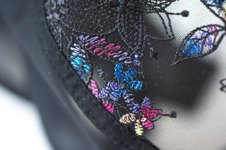 Kończąc zachwyty nad haftem – miła jest oczywiście także przezroczystość dolnej części miseczek, mimo że mamy tu już dwie warstwy tiulu. Tył jest całkowicie czarny – szkoda, że np. przy zapięciu nie znalazły się żadne fragmenty haftu, to byłaby już pełnia szczęścia.