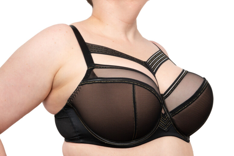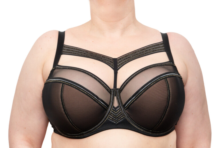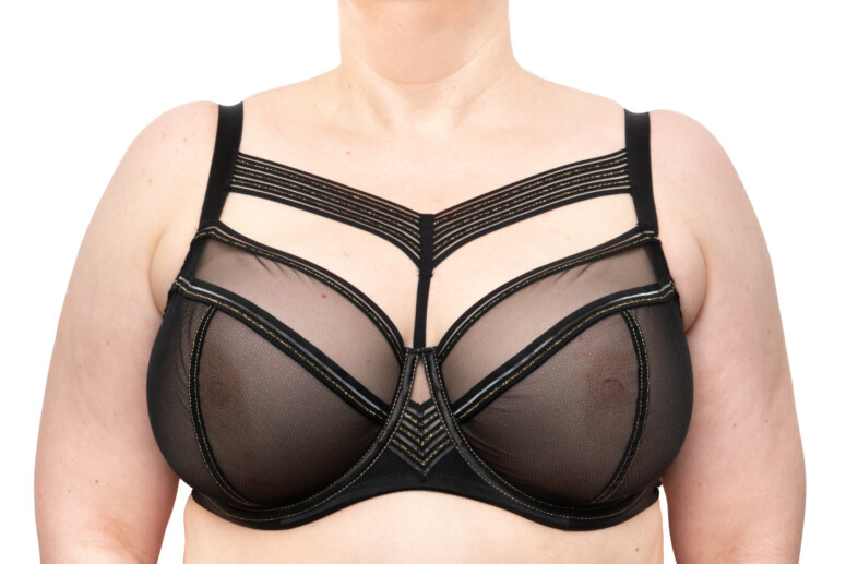 Pasek dekoltowy pięknie wystaje mi z wielu ubrań i chętnie traktuję go jako biżu. Cały stanik zresztą wygląda jak biżuteria… Kolejnym moim zachwytem jest mostek i paski tworzące na nim kształt litery V.
