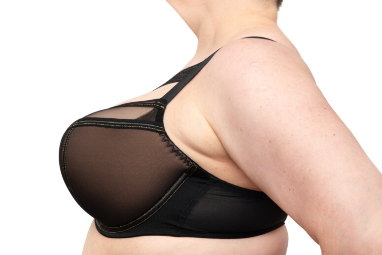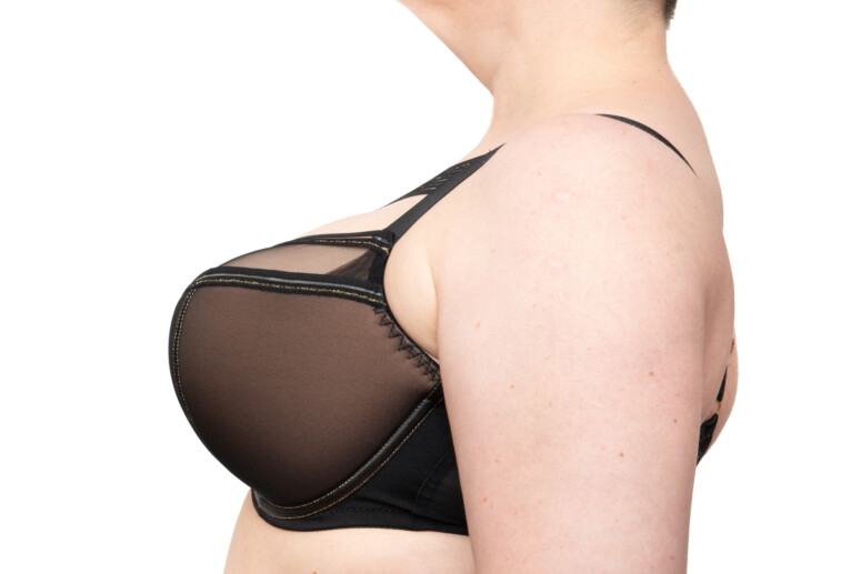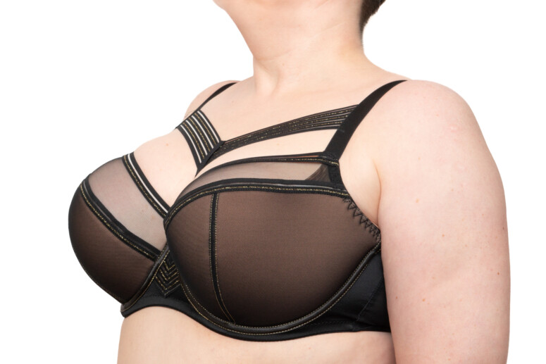 Z półusztywnianym było trudniej. Nietypowo, jak na semi softy, uznałam, że potrzebuję mniejszych (a nie większych) miseczek. W moim zwykłym 85G piersi wpadały do przepastnych misek, zostawiając zbyt dużo luzu u góry, a taśma, którą wykończono skośne szwy, mocno się odznaczała na krawędzi usztywnianej części. W moich starych K-1030 z Avy wybierałam wręcz większe rozmiary, a tu – niespodzianka. Co prawda 85F ma z kolei objawy lekkiej zamałości – ale daje się nosić, w przeciwieństwie do mocno jednak odstającego 85G.