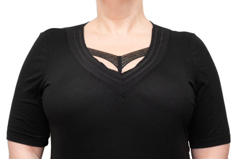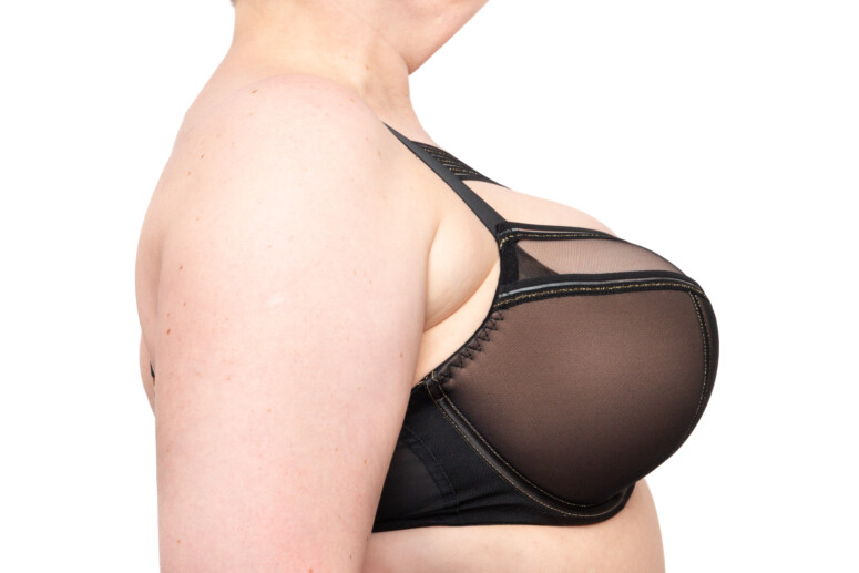 Jak już wspomniałam, wyzwania kształtowe skłoniły mnie do zmiany rozmiaru w półusztywnianym modelu – m.in. dlatego nie stawiam maksa. Jeśli chodzi o miękki – nie wykluczam, że w mniejszym rozmiarze piersi byłyby mocniej podniesione, ale na tyle dobrze się czuję w 85G, że nie zdecydowałam się na żadne kombinacje. Może następnym razem, gdy trafi do mnie ta konstrukcja, sprawdzę i tę opcję. Kształtowanie jest dobre, ale w porównaniu z innymi konstrukcjami trochę słabsze (być może ze względu na przydużą miskę). Lamówka pośrodku miseczki nie odznacza się pod ubraniem, czego się najbardziej obawiałam.