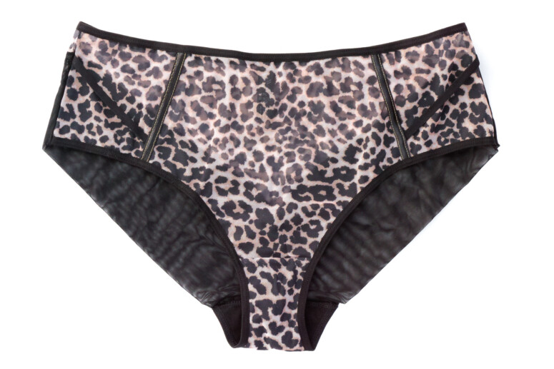 Ale uwaga: żeby przekonać się, jak skrojono naszą panterę, trzeba zajrzeć pod spód – do środka miseczek, ponieważ od zewnątrz cały ten misterny układ przykrywa elastyczna panterkowa zasłonka. Dlatego tutaj na pewno nie wystarczy rzut oka na biust modelki 🙂
