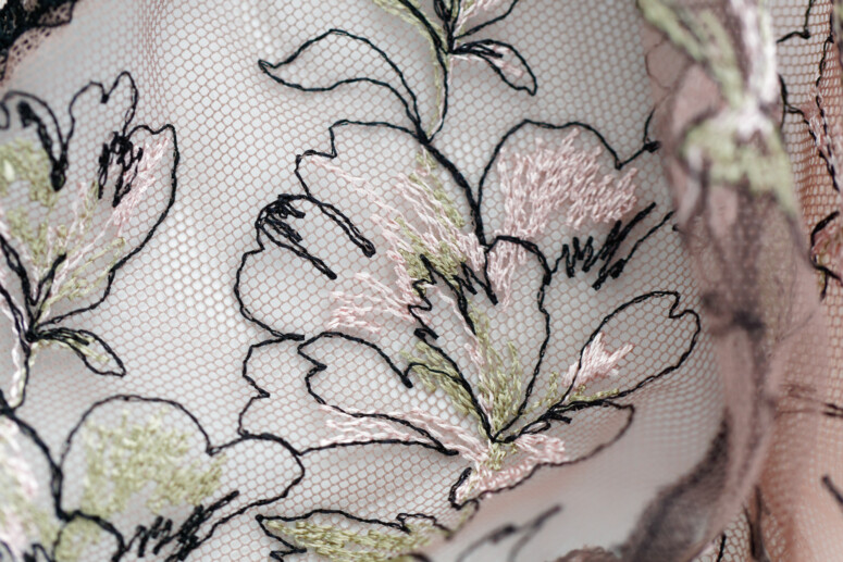 Haft, oprócz cieniutkich i prezyzyjnych czarnych konturów, zawiera plamy pistacjowej zieleni i bladego różyku. Jasny, lekko przydymiony róż to także kolor kokardki. Daniela jest wysmakowana kolorystycznie, elegancka, stonowana, a przy tym wcale nie nudna. Same haftowane kwiaty nie zrobiłyby jednak całej efektowej roboty na tym modelu – gdyby nie ten superwyrazisty czarny, muszelkowaty motyw na całym obwodzie stanika. Jestem totalnie zachwycona ozdobnym tyłem! Niestety, niegładki tył to rzadkość w naszych biustonoszach, a już zwłaszcza taki zrobiony z elastycznego haftu. Proszę o więcej!