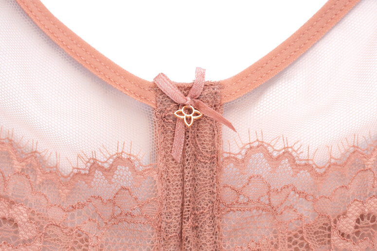 Design Morelowej Iluzji nie przedstawia niczego wyjątkowego – tiul plus rzęskowa koronka w kwiaty. Oczywiście zachwyciłaby mnie bardziej, gdyby wzór był trochę mniej pospolity. Bella w tym modelu pokazuje swoje najbardziej tradycyjnie kobiece wcielenie. Wyróżnia się jednak jakością. Zwróćcie uwagę na staranność wykończenia (jedyne, czego mi brakuje, to wykończenia tej tasiemki łączącej ramiączko z tyłem od spodu), na drobne ściegi, miękkie i miłe w dotyku materiały.